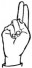 На ћирилици написано ДАМИР ГЛУШАЦ састоји се из 11 слова [?]. Исписано ћириличном једноручном азбуком за глувонеме: